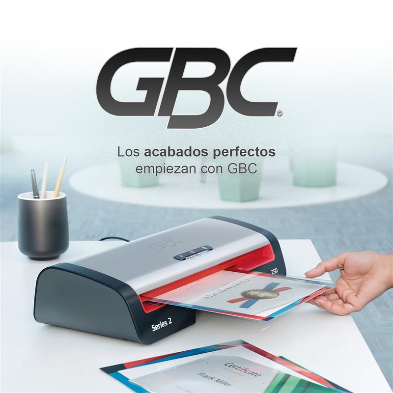 Desde oficinas y colegios hasta espacios de trabajo domésticos, GBC ofrece plastificadoras elegantes y compactas diseñadas para un uso sin esfuerzo. Con un LED SMART para un funcionamiento sin problemas y un apagado automático que ahorra energía, las plastificadoras GBC ofrecen resultados rápidos, fiables y de alta calidad. Combínalas con las bolsas GBC para proteger y conservar tus documentos importantes con un acabado perfecto en todo momento.